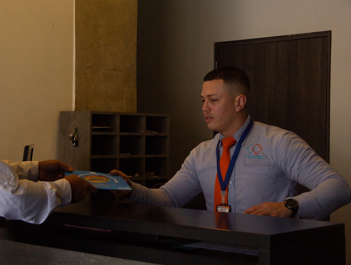 El Nuestros recepcionistas, perfectamente uniformados y acatando todos los protocolosde seguridad realizan las funciones de recepción y atención telefónica que le sean asignados. Así como, cualquier otra administrativa y/o comerciales, que se acuerde entre Cuidarte Mantenimiento S.A.S Y EL CLIENTE.